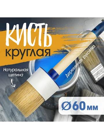 Кисть круглая ТУНДРА, натуральная щетина, деревянная рукоятка, №18, 60 мм. Кисть круглая ТУНДРА предназначена для нанесения красок, эмалей и лака на различные поверхности. Натуральная щетина подходит для равномерного распределения эмали и густых лакокрасочных покрытий без подтеков. Круглая форма кисти подойдет для окрашивания в труднодоступных местах, как углы, дверные проемы и окна. Деревянная рукоятка обеспечит удобством во время работы.