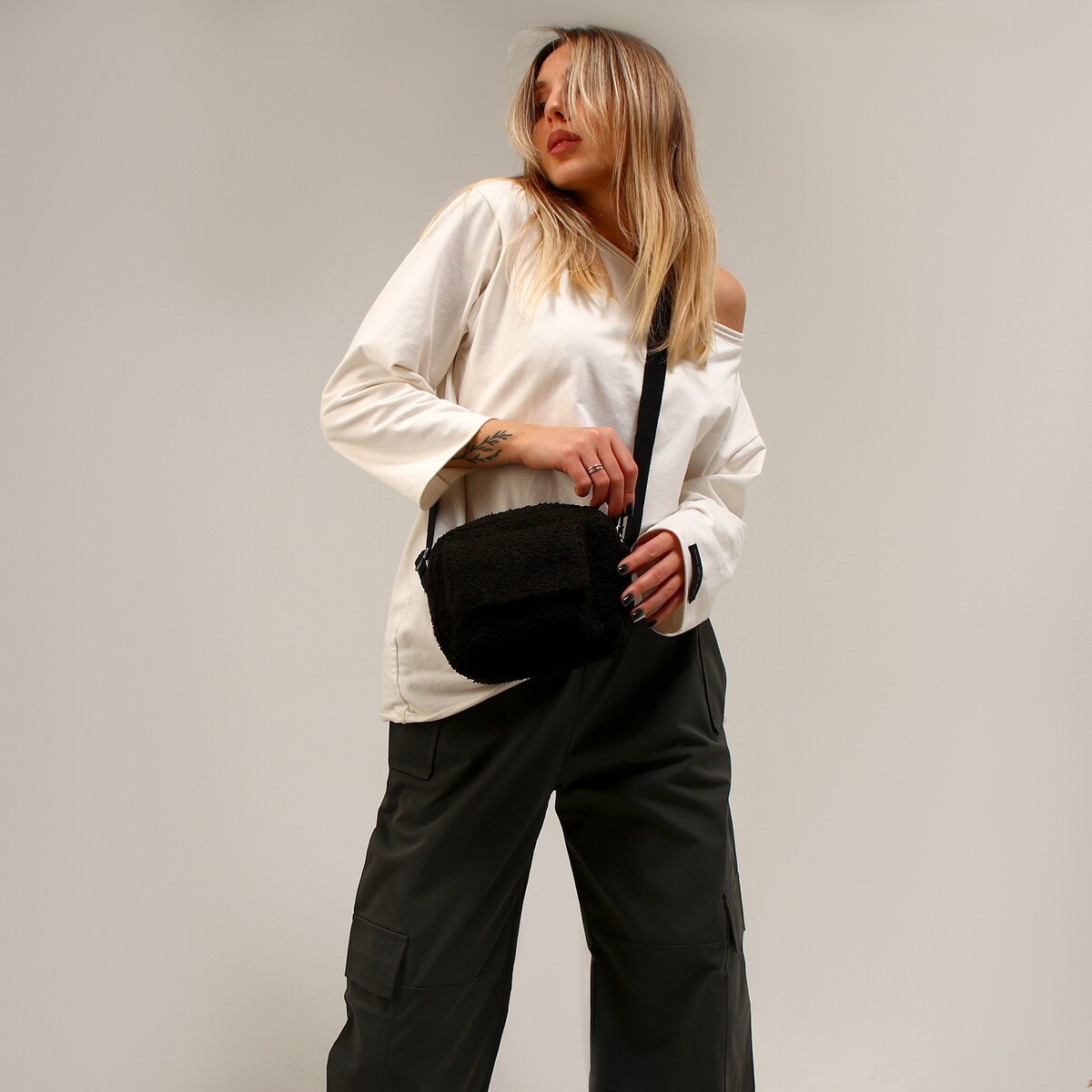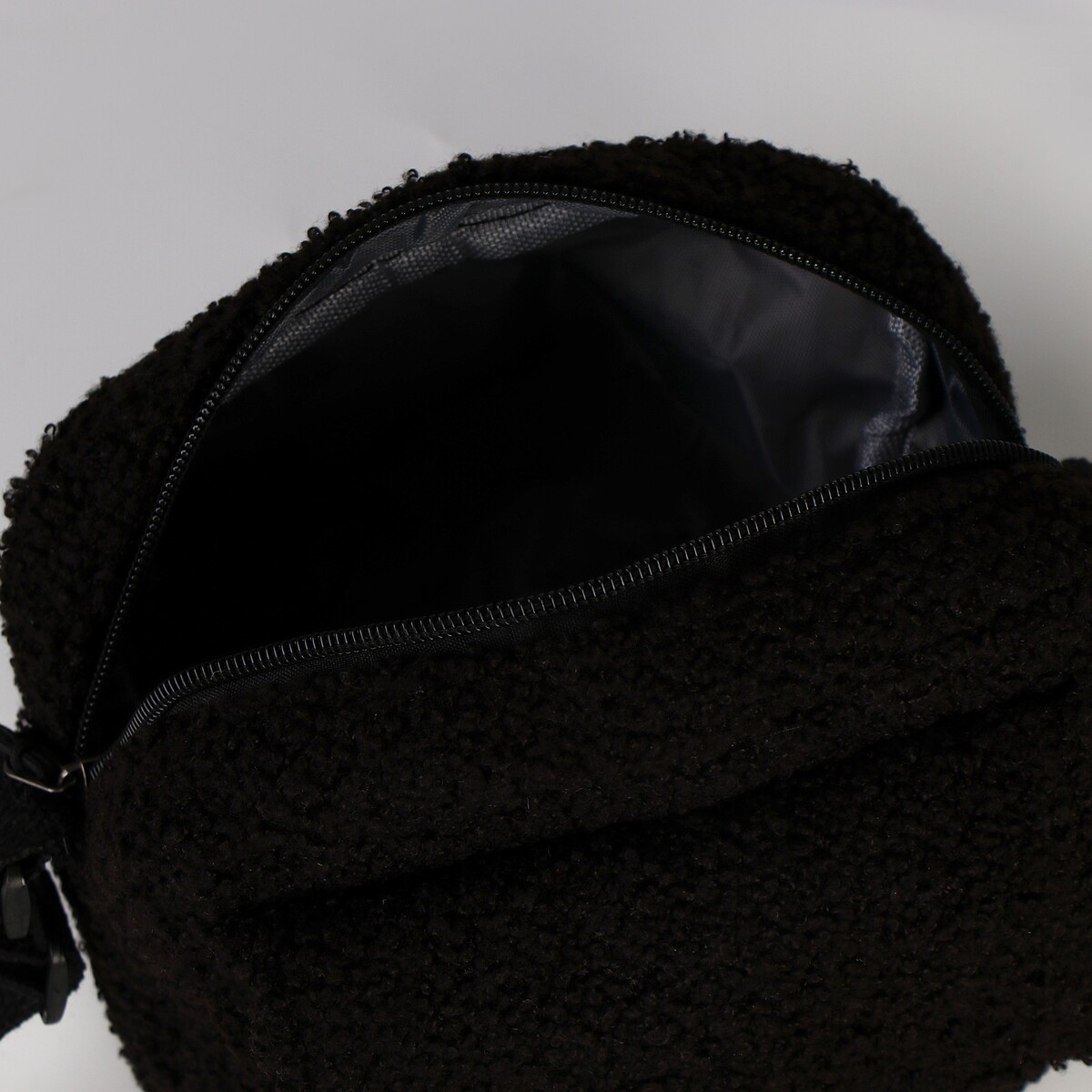 Плюшевая сумка тедди кросс-боди, черная.