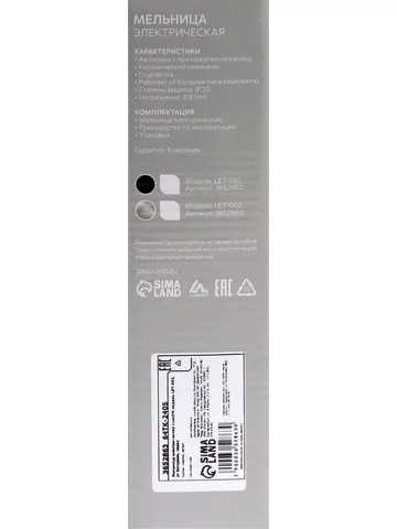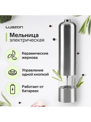 Мельница электрическая Luazon LET-002, металл, от батареек, серебристая.