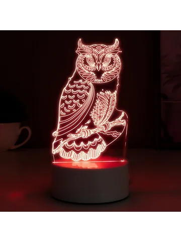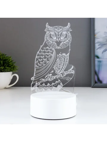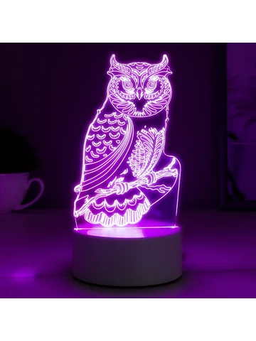 Светильник «Сова» LED RGB от сети. Декоративный сетевой светодиодный светильник с 3D-рисунком станет отличным украшением прикроватной тумбы или детской комнаты. Во включенном состоянии появляется глубина и объем изображения. После покупки обязательно отклеивайте бумажную основу (без применения посторонних предметов, чтобы не поцарапать поверхность).