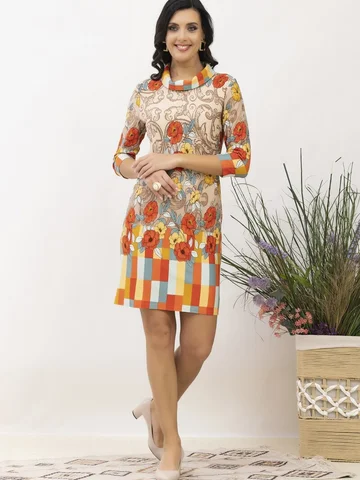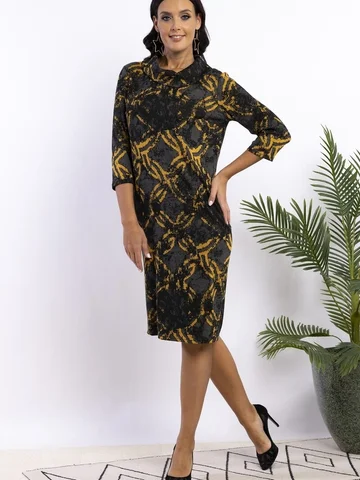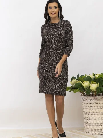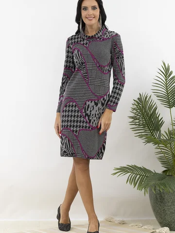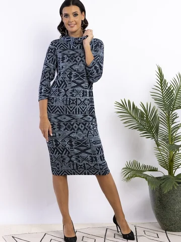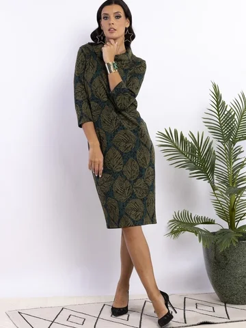 Классическое платье прямого силуэта с отложным воротником хомут . Линия плеча по плечевой точке. Длина рукава 3/4. Длина изделия 102-105см. Обращаем внимание, что рост модели 180см. Ткань на ощупь мягкая, гладкая, эластичная. Верхний слой ткани-жаккардовое плетение меланж. Красивое офисное платье от AhaLodensa для базового гардероба. Осенне-зимняя коллекция.