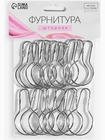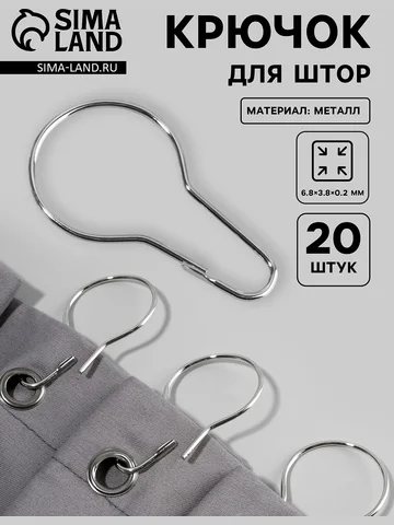 Крючок для штор, 6.8×3.8×0.2 см, 20 шт., цвет серебряный. Серебряные шторные крючки 6,8х3,8х0,2 см — надежная основа для сборки гардин на карниз. Набор из 20 штук подойдет для полного комплекта штор в несколько окон или для замены изношенной фурнитуры. Металлическая конструкция обеспечивает устойчивость к нагрузкам, сохраняя форму даже при частом использовании. Особенности