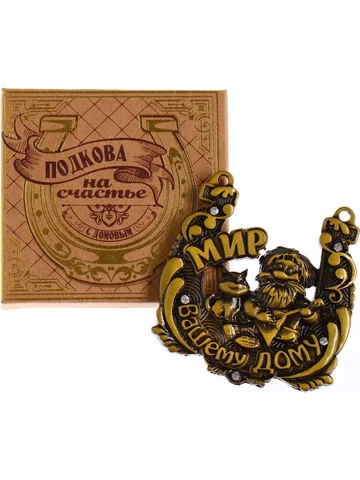 Подкова домовой «Мир вашему дому», 6.5×6.9 см. Будьте счастливы! Подкова — один из самых древних и мощных талисманов, способных принести невероятное везение и успех. Оберег с ажурным тематическим узором изготовлен из металла. Подкова имеет сквозные отверстия, в которые можно продеть ленту и поместить на удобное Вам место в доме. Как правильно вешать подкову? Если подкова висит рожками вверх, то символизирует чашу, до краев наполненную чистой удачей. Такой талисман владелец должен хранить рядом с собой, в границах своего дома. Если подкова висит рожками вниз, то она выступает в роли оберега и становится ловушкой для дурного глаза и нечистой силы. Ее разумнее подвесить над входом в жилище.