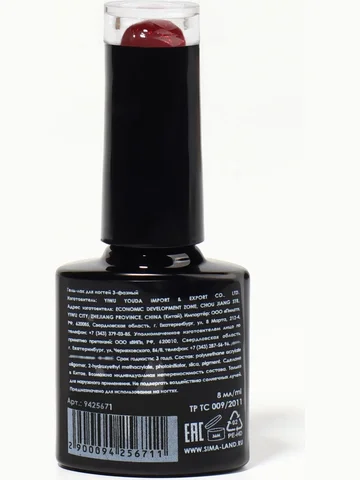 Гель лак для ногтей, с блестками, трехфазный, 8 мл, LED/UV, красный (79). Большая палитра красных оттенков 3-х фазных гель лаков серии «RED BOOM». Оттенки красного, которые можно дополнять декором и делать маникюр еще более привлекательным. Такое покрытие придаст образу изюминку и не оставит незамеченной. На Ваших пальчиках, оттенки палитры будут смотреться изящно. Индикатор цвета на верху бутылька, поможет Вам подобрать идеальный цвет. Гель лак, в отличии от обычного лака, имеет большое количество преимуществ — он прост в использовании, дольше держится и поддерживает ногти в ухоженном состоянии, а также быстрее высыхает, благодаря сушке в лампе (UV и LED-лампах). Из-за правильной химической реакции, покрытие затвердевает сильнее, чем у обычного лака. Перед нанесением гель-лака, нужно подготовить ногти — очистить поверхность пластины специальным обезжиривающим средством, очистить ногтевую пластину, придать форму ногтю, обработать кутикулу. Трехфазная система нанесения лака является самой стойкой. Первая фаза — наносим базу. Базовое покрытие сводит к минимуму появление отслоений и сколов. Также база позволяет сделать выравнивание и скрыть недостатки ногтевой пластины. В таком случае итоговый результат получится более аккуратным. Вторая фаза — наносим сам гель лак. Высокая пигментация лака, позволяет наносить его в один слой. Третья фаза — наносим топовое покрытие. Топ служит для защиты маникюра от небольших механических повреждений, сколов, царапин. Также он придает блеск и способен сгладить неровности ногтя. Маникюр является таким же украшением и дополнением вашего стиля, как обувь или сумочка. Значит, и ногти должны соответствовать вашему наряду. Результат использования гелевого покрытия — безупречный маникюр без сколов, который продержится до четырех недель.