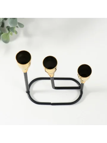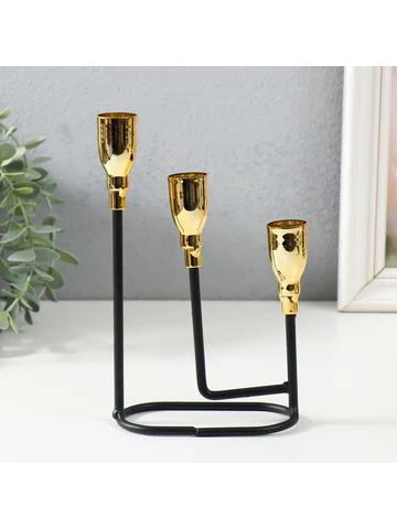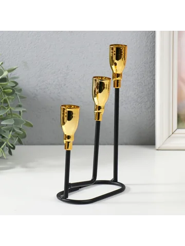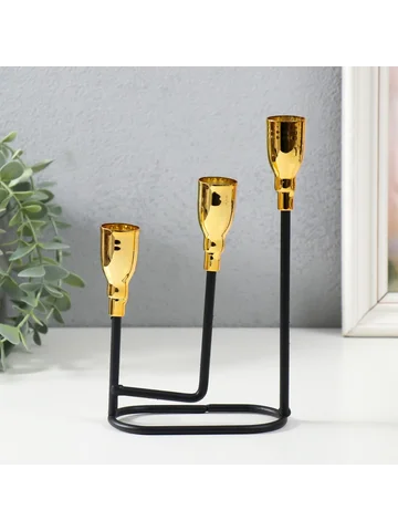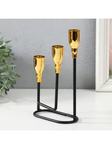 Металлический подсвечник на 3 свечи «Афина», черный с золотом, 13×5.8×22.2 см.