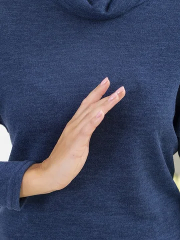 Эффектный свитер из уютного трикотажа. Прямоугольный воротник прекрасно моделируется в воротник стойку или отложной. Благодаря лаконичному свободному крою садится на любую фигуру, зрительно ее корректирует. Блуза не сковывает движений, идеально подходит для повседневной носки, для работы, для прогулки. Объемный блузон слегка заужен к низу, линия плеча спущенная, рукав длинный. Длина изделия 64-66 см. Обращаем внимание, что рост модели 180см. Красивый свитер от AhaLodensa для базового гардероба. Осенне-зимняя коллекция.
