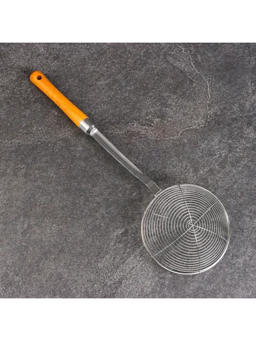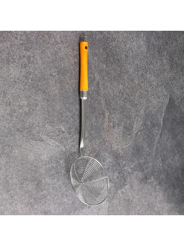 Дуршлаг-сито шафран, d=13 см, глубина 3.5 см, длина 41 см, с деревянной ручкой, металл Шафран