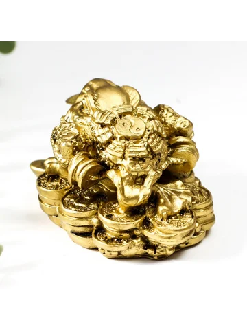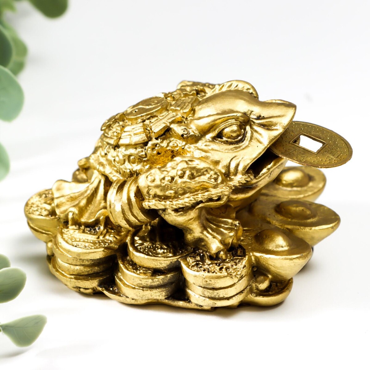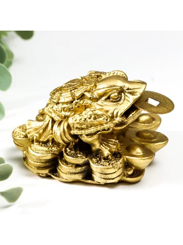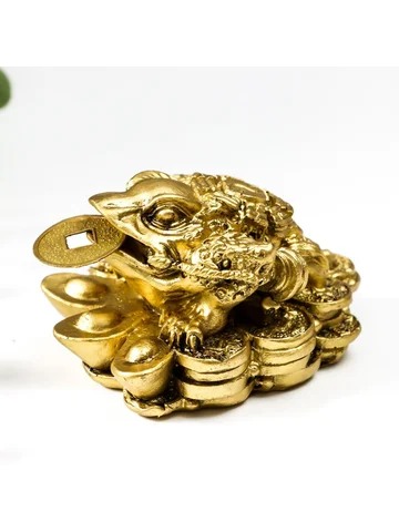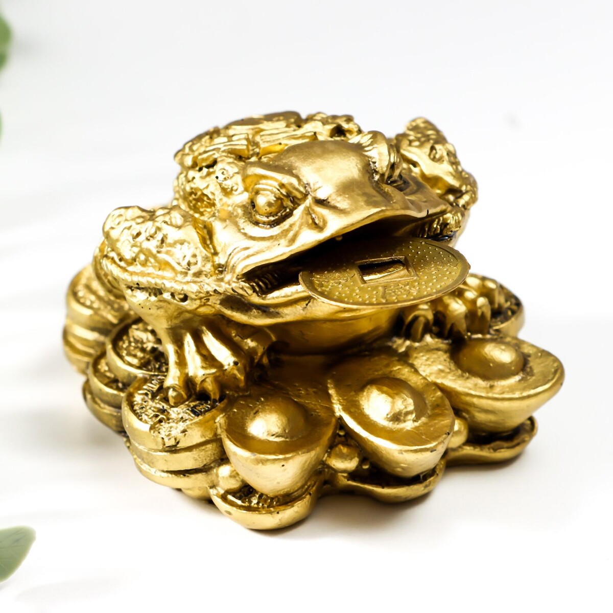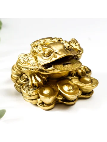 Нэцкэ фигурка «Денежная жаба инь-ян со слитками золота», полистоун, под бронзу, 4.8×6.5×8.5 см.