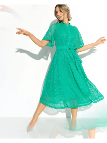 Вам посылка из залитой солнцем страны с пометкой «Осторожно! Модное!». Тончайшее кружево, расслабленный силуэт, свежий цвет. Это не платье, это состояние. Примеряйте скорее!