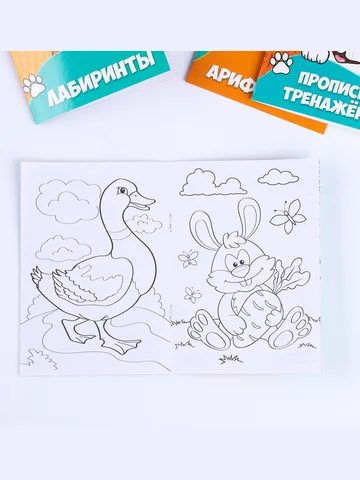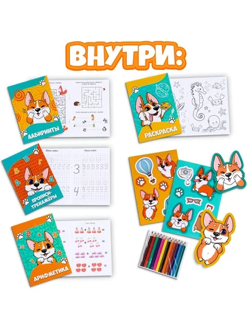 Карандаши, Наклейки, Мягкая игрушка, Прописи, Раскраска