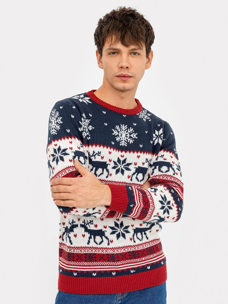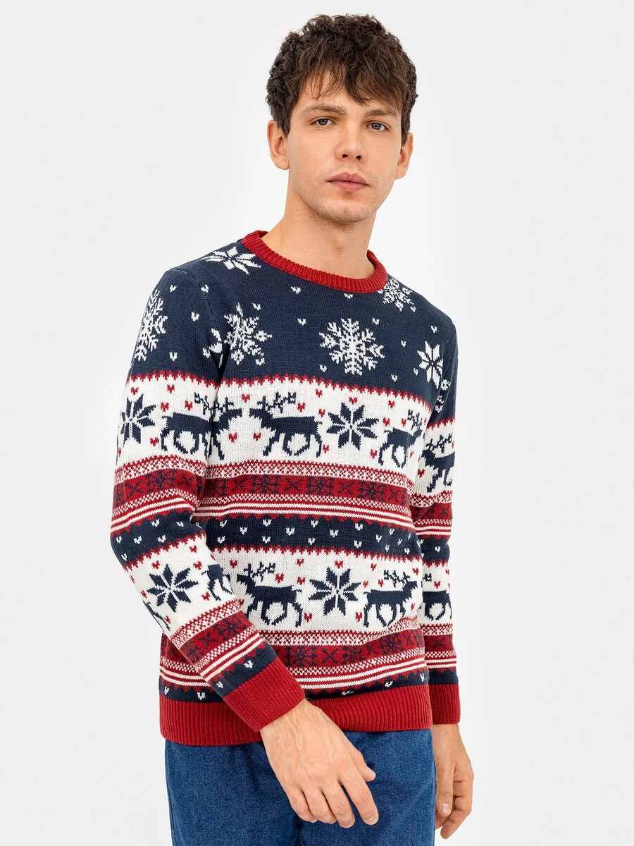 Джемпер мужской новогодний в сине-красном цвете Mark Formelle