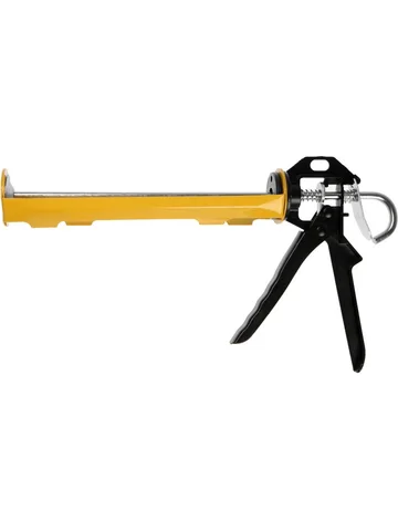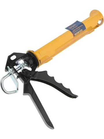 Пистолет для герметика ТУНДРА, полуоткрытый, круглый шток, 225 мм. Пистолет для герметика ТУНДРА предназначен для точного и удобного нанесения строительной химии на обрабатываемую поверхность. Без этого инструмента не обойтись, если нужно заделывать трещины и щели, уплотнять стыки при монтаже окон и дверей, устанавливать сантехнику, утеплять дом.