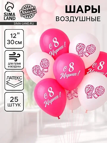 Воздушные шары латексные 12" «С 8 Марта!», 25 шт.. Набор латексных шаров «С 8 марта!» — не просто украшение, а мягкий фон для важного дня. Палитра создает ощущение праздника без суеты: тепло, по-домашнему искренне — как объятие перед входом в зал. Особенности