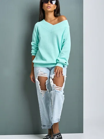 Длина изделия: 71 см Особенности: Вязаный джемпер выполнен из смесовой пряжи фактурным мягким способом. Рукав реглан с манжетами глубокий V-образный вырез горловины оформлен широкой резинкой в рубчик.