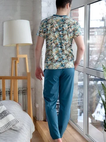 Костюм мужу понравился. Расцветка, как на фото на сайте. На его размер 50 и рост 172 см брюки длинноваты, придется подрезать. А по размеру в самый раз. Трикотаж тонкий, приятный. Симпатичный домашний костюмчик.