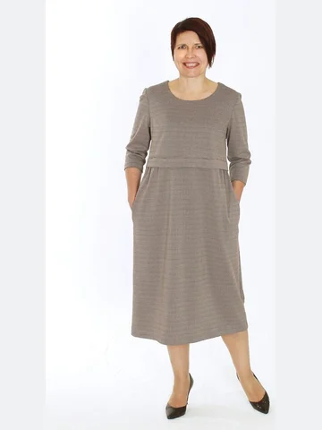 Платье свободного силуэта с круглым вырезом. По завышенной линии талии заложена формообразующая складка. Низ изделия за счет сборки можно считать оверсайз. По спинке планка, декорированная пуговицами. Карманы боковые внутренние.Длина изделия р.48-110см,р.50-110см,р.52-112см,р54-112см. Ткань на ощупь мягкая, гладкая, эластичная. Красивое платье от AhaLodensa для базового гардероба. Весенняя коллекция.
