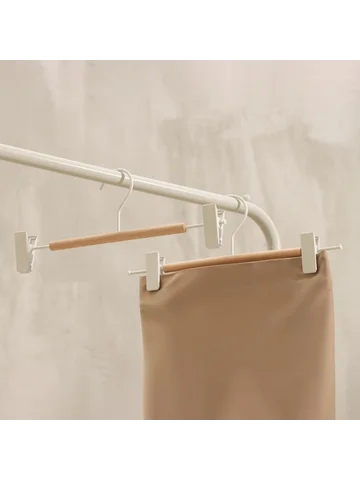 Вешалка для брюк и юбок LaDо́m Laconique, 28×11.5×2.8 см, с зажимами, белая. Брюки и юбки разных фасонов и моделей имеют одно общее свойство: их сложно хранить. На неудачно сложенной одежде могут появиться заломы и складки, из-за чего вещи приходится гладить повторно. Это маленькое неудобство можно решить с помощью специального предмета. Вешалка для брюк – это компактное приспособление, которое позволит вам разместить в гардеробе классические штаны из легких или плотных материалов. Изделие практичной формы занимает мало места, что позволяет экономить пространство в шкафу/ Преимущества: