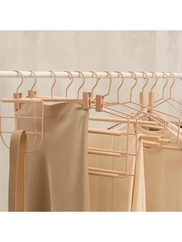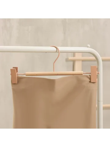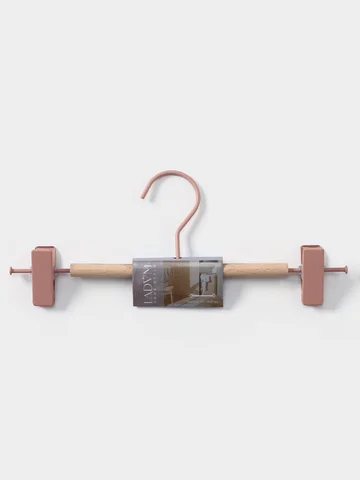 Вешалка для брюк и юбок LaDо́m Laconique, 28×11.5×2.8 см, с зажимами, розовые. Брюки и юбки разных фасонов и моделей имеют одно общее свойство: их сложно хранить. На неудачно сложенной одежде могут появиться заломы и складки, из-за чего вещи приходится гладить повторно. Это маленькое неудобство можно решить с помощью специального предмета. Вешалка для брюк – это компактное приспособление, которое позволит вам разместить в гардеробе классические штаны из легких или плотных материалов. Изделие практичной формы занимает мало места, что позволяет экономить пространство в шкафу/ Преимущества:
