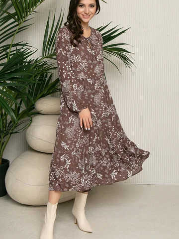 Платье свободного силуэта из шифона. Платье на подкладе. Втачные длинные рукава. Платье без застежки.