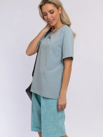 В гардеробе современной женщины наверняка найдется место для этого универсального, простого и стильного наряда. Базовая женская футболка оверсайз будет сочетаться с шортами, юбкой, брюками, джинсами и т.д. Данные футболки позволят создавать самые различные образы - яркие, современные, стильные. Данная модель отличается свободным кроем и красивой формой укороченных рукавов с подворотом. Футболки хлопковые женские, в состав которых входит 8% эластана, приятны к телу, красиво смотрятся и долго носятся.