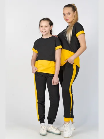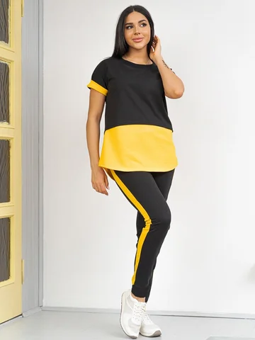 Костюм спортивный женский. Изготовлен из ткани — футер с лайкрой. В комплекте идут удобные брюки и футболка свободного силуэта. Отлично подойдет для прогулок и занятий спортом.