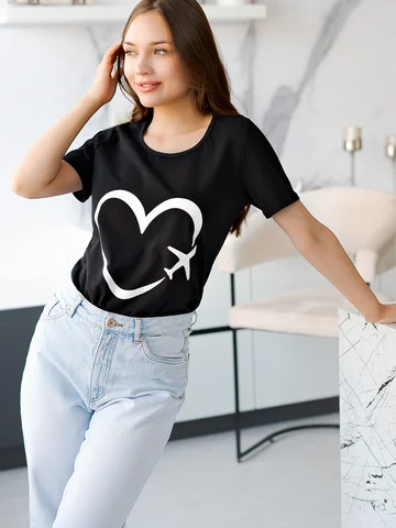 Футболка с принтом Ф 257 (Самолетик) Модель изготовлена из кулирки с лайкрой качества пенье, а поэтому приятно прилегает к телу. Подходит для прогулок и занятий спортом.