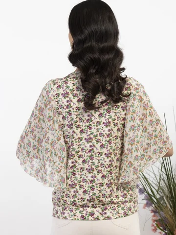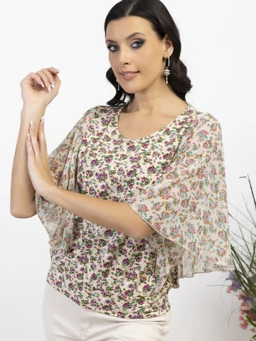 Блуза полуприлегающего силуэта на поясе с круглым вырезом. В рельефы по переду и спинке вставлен волан из шифона. Длина изделия 60-63см. Ткань вискоза мягкая, шелковистая, легко драпируется. Гигроскопична и воздухопроницаема. Красивая блуза от Ahalodensa для базового гардероба.