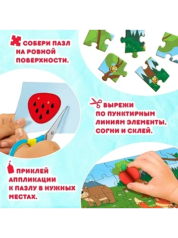 - Украсьте пазл получившимися аппликациями.