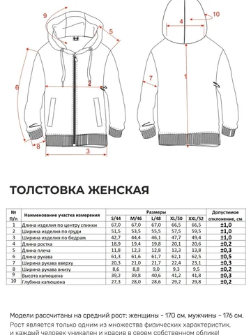 Женская теплая толстовка с капюшоном, на молнии, выполнена из качественного мягкого трикотажного полотна – интерсофт (футер с флисом). Модель прямого силуэта, изделие без подкладки. Объем капюшона толстовки регулируется шнуром. На полочке изделия объемные и вместительные карманы с листочками. Рельефная эластичная трикотажная резинка по низу изделия и рукавам. Трендовый дизайн делает нашу толстовку стильной частью повседневного женского гардероба. Свободный крой не стесняет Ваших движений. Женская базовая толстовка на молнии - это стиль, комфорт и практичность. Отличный вариант для занятий спортом, прогулок, рыбалки, охоты, похода и повседневной носки. Толстовку на молнии идеально носить весной, летом и осенью и ею можно заменить ветровку и олимпийку, бомбер или худи. Легкий и функциональный материал изделия обеспечит комфорт в любое время года: свойство ткани позволяет выводить лишнюю влагу, сохранять тепло, и оставлять тело сухим. Наша толстовка станет лучшим подарком на любой праздник! Гладить с изнанки. Стирка при t не более 30С. Деликатный отжим, отбеливание запрещено. При соблюдении наших несложных правил ухода одежда DS будет радовать Вас долгое время!