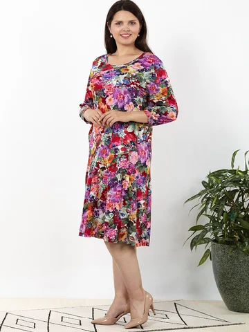 Платье свободного силуэта с круглым вырезом. По низу переда и спинки волан. Линия плеча по плечевой точке. Длина рукава 3/4 на манжете. Тип горловины круглый вырез. Внутренние карманы. Длина изделия 102-104см. Красивое платье от AhaLodensa для базового гардероба. Весенняя коллекция.