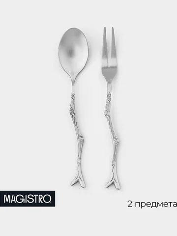 Набор столовых приборов Magistro «Вудс», 2 предмета, нержавеющая сталь, серебристый. Набор столовых предметов Magistro «Вудс» изготовлен из качественной нержавеющей стали. Такие столовые приборы прекрасно подойдут для ежедневного использования и для особых торжественных случаев. Приборы имеет необычный дизайн. Они стильно смотрятся в сервировке, отлично подойдут для фотокомпозиций и для красивой подачи чая и лимона. Комплектация: