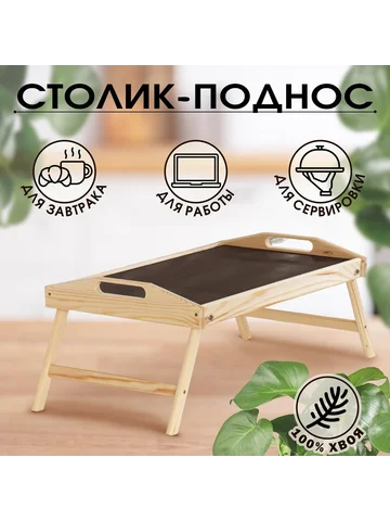 Столик - поднос для завтрака складной Дарим Красиво, 50×30 см, с ручками, дерево. Стильный и компактный столик с небольшими бортиками по периметру позволит порадовать любимых завтраком в постель. Благодаря складным ножкам изделие легко переносить и удобно хранить. Поднос подходит не только для завтрака в постель — если поставить на столик ноутбук, можно смотреть кино или работать.