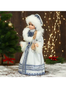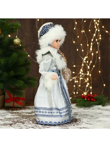 Снегурочка под елку «Зимнее волшебство. В шубке с узорами» двигается, 40 см. Декоративная фигурка Снегурочки высотой 40 см в шубке с изящными узорами привносит в новогодний интерьер особое настроение и очарование. Эта кукла с движущимися элементами, работающая от батареек, сочетает в себе советский стиль и романтику шебби-шика, создавая уникальный образ, который гармонично вписывается в праздничную атмосферу. Универсальный дизайн подходит для всех, кто ценит традиции и ищет оригинальное украшение для зимних праздников. Особенности