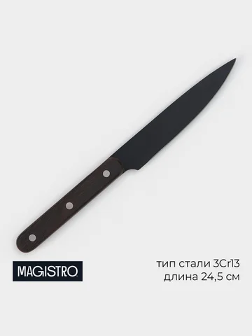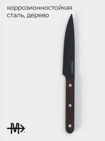Нож универсальный кухонный Magistro Dark wood, длина лезвия 12.7 см. Представляем вашему вниманию нож Magistro – это идеальный выбор для профессиональных поваров и любителей кулинарии, ценящих качество, удобство и безопасность. Преимущества товара: