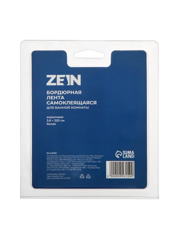 Лента бордюрная zein, самоклеящаяся, для ванной комнаты, 3.8×320 см, акриловая, белая ZEIN