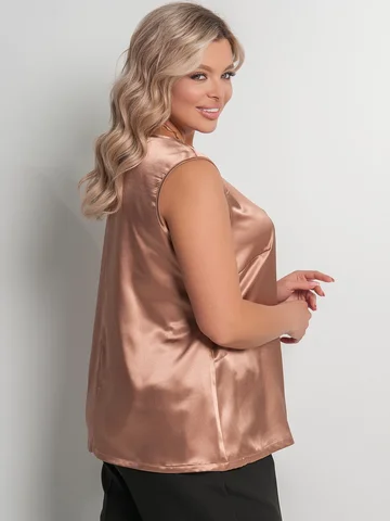 Топ женский прямого силуэта, без рукавов, на широких лямках, выполненный из однотонного атласа.