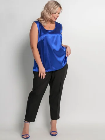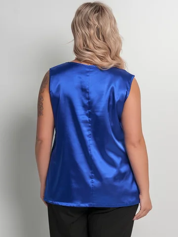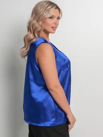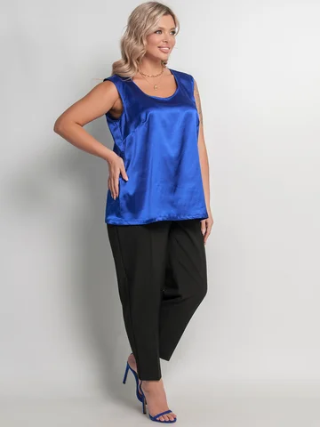 Топ женский прямого силуэта, без рукавов, на широких лямках, выполненный из однотонного атласа.