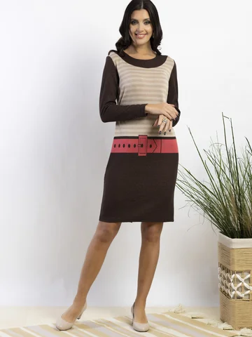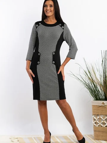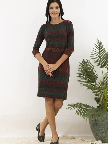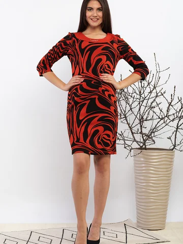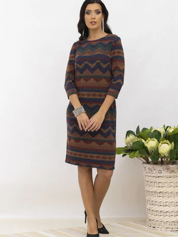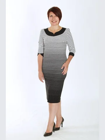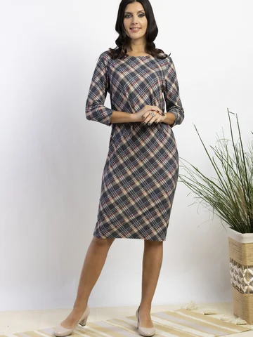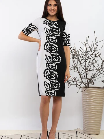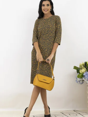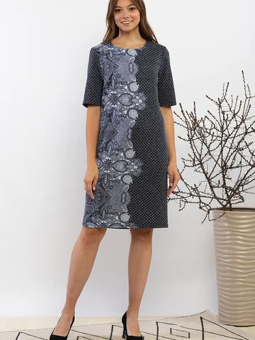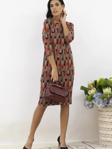 Классическое платье футляр полуприлегающего силуэта с круглым вырезом. Вырез обработан формованной обтачкой из ткани компаньона. По низу спинки разрез. Линия плеча по плечевой точке. Длина рукава 3/4. Карманов нет. Длина изделия 101-105см. Обращаем внимание, что рост модели 173 см. Ткань академик на ощупь мягкая, гладкая, эластичная. Внешняя поверхность абсолютно ровная матовая. Красивое платье от AhaLodensa для базового гардероба. Осенняя коллекция.