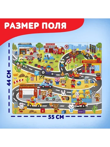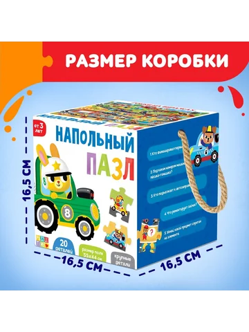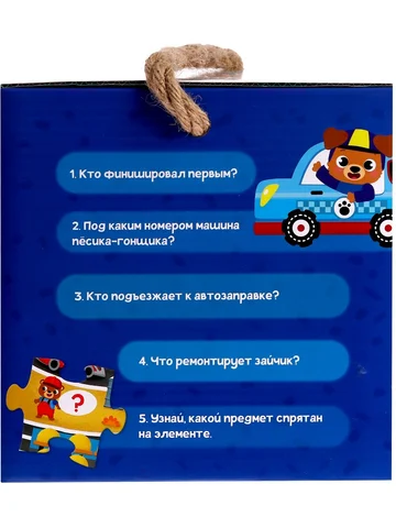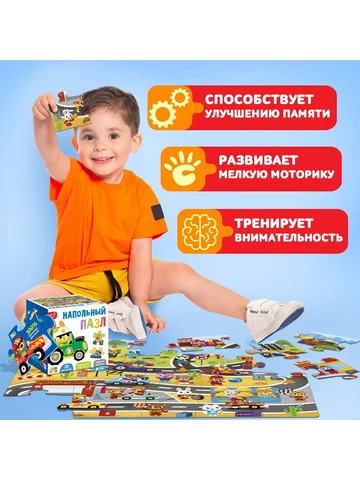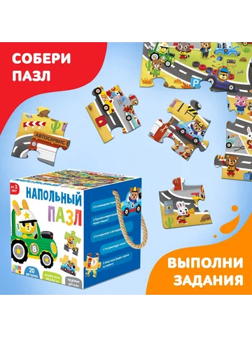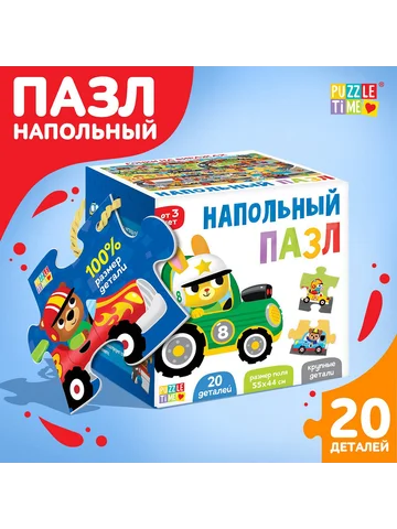 Напольный пазл «Гонки на виражах», 20 крупных деталей. Занимаясь с напольными пазлами, ребенок разовьет моторику рук, логическое мышление, воображение, потренирует память. Большие элементы и красочные иллюстрации заинтересуют малыша, и он научится находить из множества деталей нужные, связь между частью и целым. Соединив все элементы, вы увидите большую красочную картинку размером 55 × 44 см. Собирайте удивительные пазлы всей семьей!