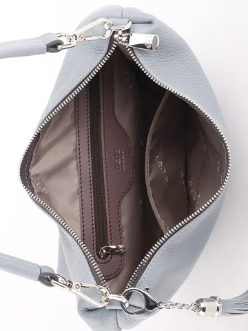 Сумка ожиданий не оправдала. Цвет написано голубой, в реальности какой-то серо-голубой, тускловатый. На фото выглядит гораздо интересней. Ручка коротковата, но есть длинный ремень. Снизу по длине всего 22 см., 30 см. по верху. В реальности не такая большая как на фото. Больше всего разочаровал цвет, ожидала более приятного оттенка. Смотрится простенько, на эти деньги не тянет. До этого уже покупала сумки этой марки, всегда была в восторге, выглядят солидно, а эта, как по мне, так не очень. Молния вшита не то серая, не то коричневая, что бросается в глаза. Почему??? Я от сумки не в восторге.