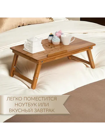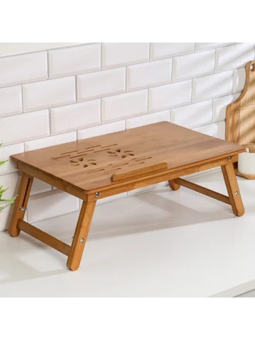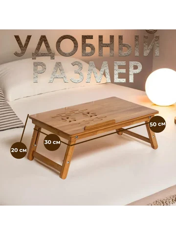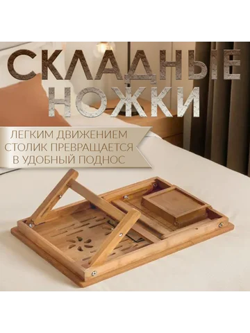 Столик для ноутбука складной, 30х50 см, дерево. Универсальный деревянный столик можно использовать для приятного завтрака в постели или ужина перед телевизором, как подставку для ноутбука, поднос для подачи блюд и сервировки. Изделие изготовлено из натурального безопасного материала, все детали тщательно отшлифованы.
