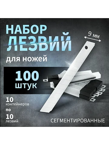 Лезвия для ножей тундра, сегментированные, 9 мм, 10 контейнеров по 10 лезвий, 100 шт. TUNDRA
