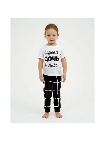 Пижама (футболка и брюки) для девочки KAFTAN «Лучшая», бело-черная, размер 34 (122-128 см).