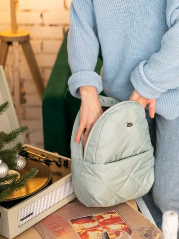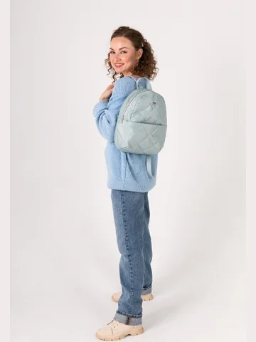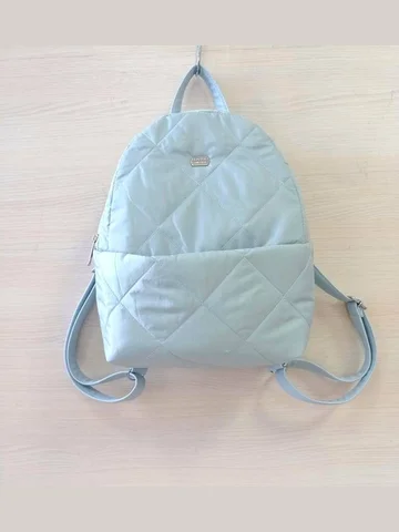 Легкий, стильный рюкзак из прочной стеганой курточной ткани с удобным скрытым передним карманом. Декорирован классическим металлическим декором.