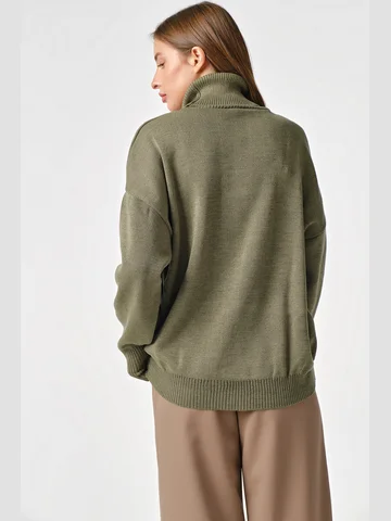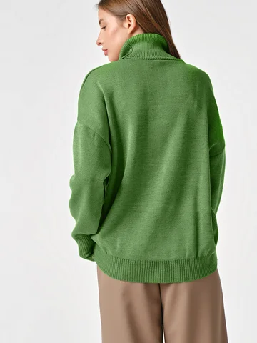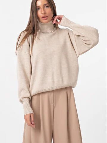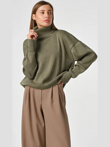 Длина изделия: 66 см.Особенности: Объемный вязаный джемпер.Низ изделия и рукавов выполнены резинкой в рубчик. Спинка длиннее переда.