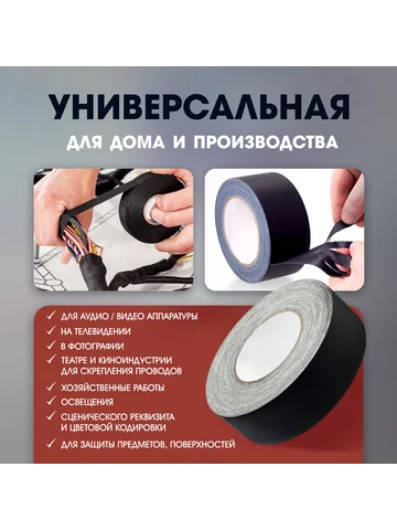 Лента клейкая «Про-Гафф» ТУНДРА, черная, 350 мкм, 48 мм × 50 м. Максимальная надежность для масштабных проектов! Армированная лента «Тундра» 48 мм (50 м) — это профессиональное решение для сложных задач, где важна особая прочность. Широкая тканевая основа создает усиленные соединения для интенсивной эксплуатации.