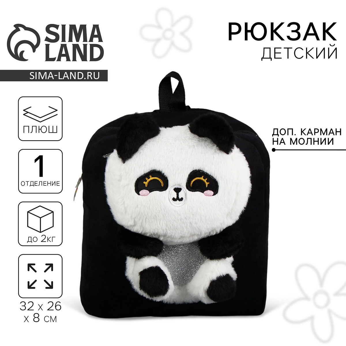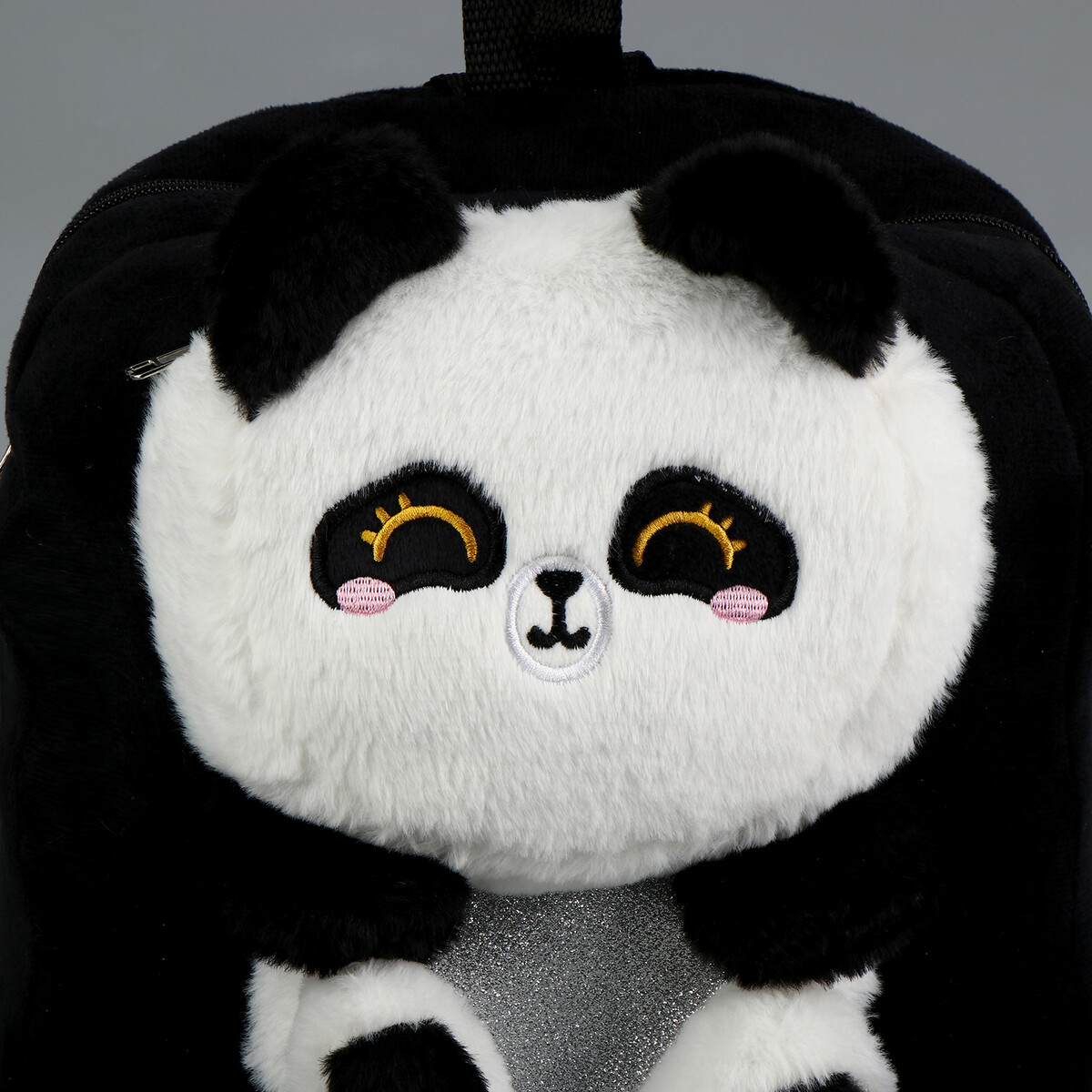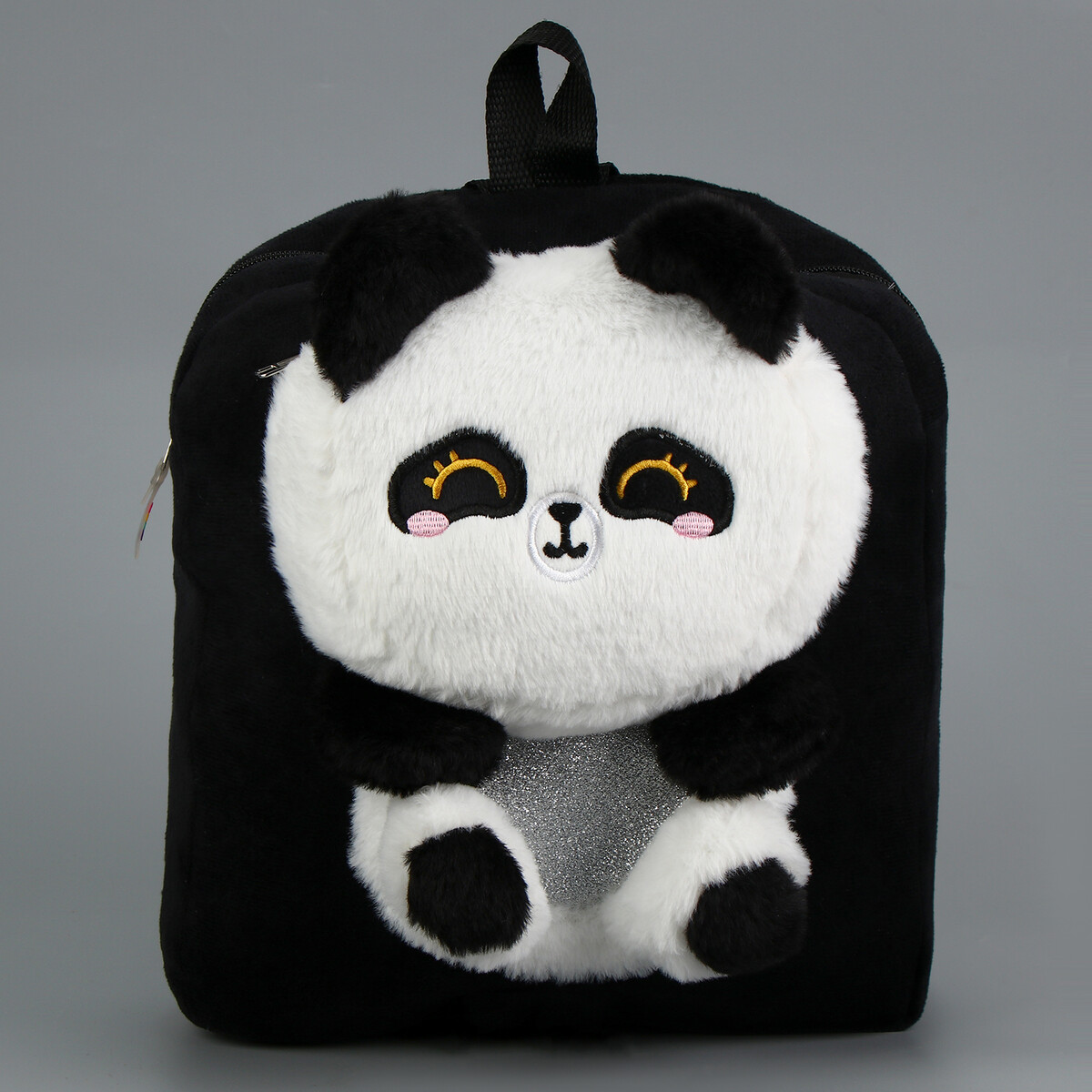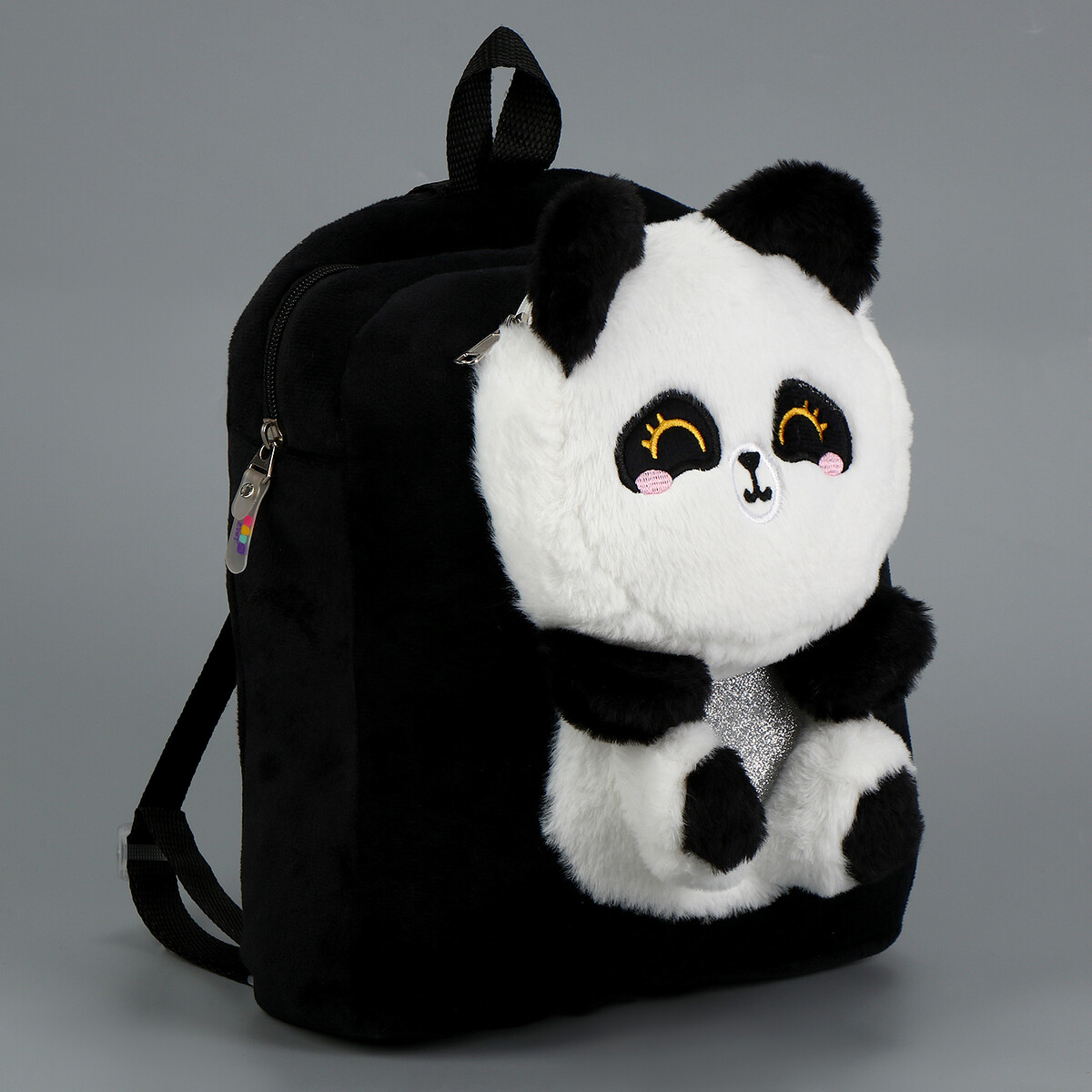 Рюкзак детский плюшевый для девочки «Панда», черный.