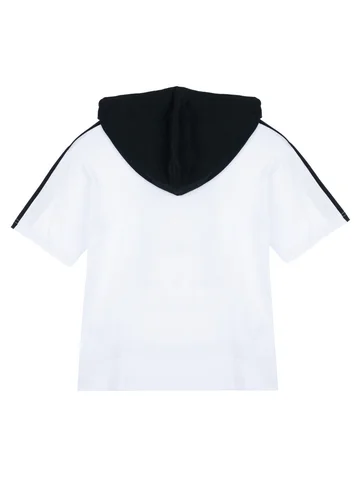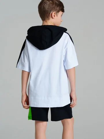 Футболка oversize из качественного и приятного на ощупь трикотажа джерси. Капюшон с утяжкой шнурком. Высокое содержание хлопка 95%. Благодаря наличию эластана в составе ткани изделие проще в уходе и держит форму.