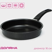 Сковорода доляна promo, d=16 см, пластиковая ручка, антипригарное покрытие, углеродистая сталь, черная Доляна