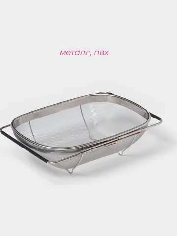 Дуршлаг - сито с ручками доляна, на раковину, раздвижной, 34×23.5×10 см Доляна